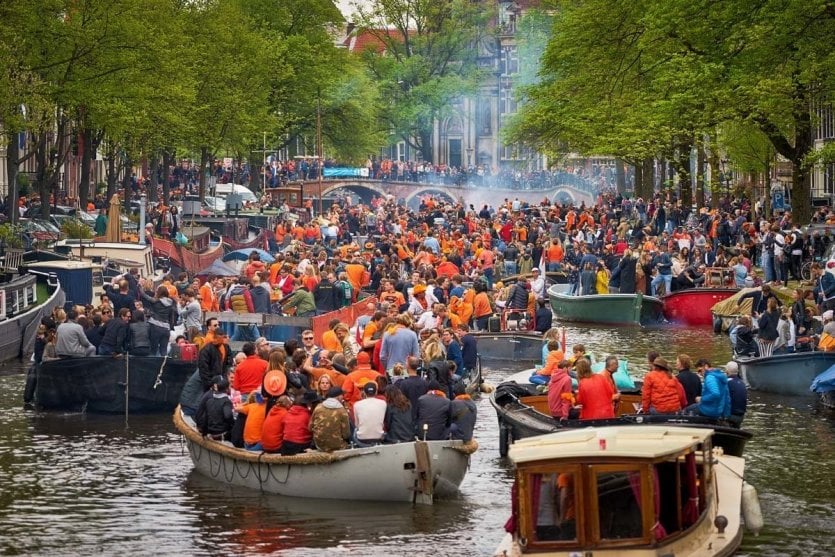 Der Nationalfeiertag der Niederlande, der früher als " Königinnentag " bezeichnet wurde, findet heute am Geburtstag von König Willem-Alexander, dem 27. April, statt und wird daher als " Koningsdag " (Königstag) bezeichnet. Er wurde 1885 unter der Herrschaft von Königin Wilhelmina eingeführt und ist ein sehr beliebtes Ereignis, bei dem Open-Air-Konzerte und ein riesiger Flohmarkt namens Vrijmarkt veranstaltet werden. Die Grachten vonAmsterdam werden zu diesem Anlass sogar geschmückt!