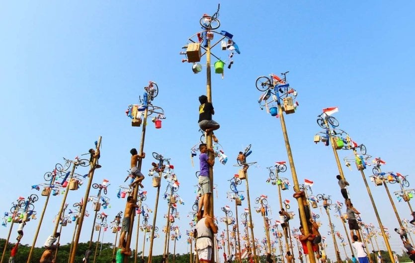 Am 17. August 1945 wurde Indonesien zur unabhängigen Republik erklärt. Heute wird dieses Datum mit einem Tag in Rot und Weiß gefeiert, an dem zahlreiche Paraden veranstaltet werden. Häufig versuchen sich die Einheimischen an einer beliebten Tradition, die teilweise wegen ihrer Umweltschäden umstritten ist: Panjat Pinang. An die Spitze Dutzender abgeschnittener und geschmierter Baumstämme werden Lose gehängt, und junge Indonesier werden aufgefordert, diese zu erklimmen, um sie abzuhängen