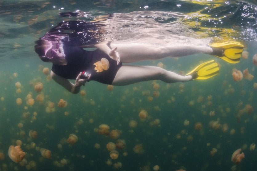 Während wir den Großteil unseres Urlaubs damit verbringen, uns vor ihnen zu fürchten, erfreuen sich einige Schwimmer am anderen Ende der Welt, auf der Inselgruppe Palau mitten im Pazifik, an den Quallen. Dort gibt es einen erstaunlichen See, der von den kleinen Tierchen bevölkert wird. Dennoch können Sie ohne Bedenken darin baden, da ihre mikroskopisch kleinen Bisse für den Menschen harmlos sind. Vorsicht hingegen beim Schwimmen an der Oberfläche, da der See in der Tiefe eine große Schicht Schwefelwasserstoff enthält, ein für den Menschen sehr gefährliches Toxin!
