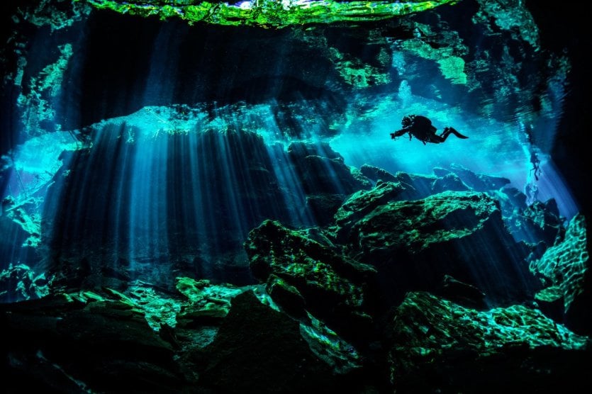 Mexiko, vor allem die Halbinsel Yucatán, ist von Süßwasserschluchten durchzogen, die durch den Einsturz von Kalksteinfelsen entstanden sind. Die Cenoten waren den Mayas heilig und sind heute fantastische Bade- und Tauchspots! Ob im Freien oder in der Tiefe, diese natürlichen Brunnen findet man überall. Rund um den Chicxulub-Krater lässt die ringförmige Anordnung der Cenoten darauf schließen, dass sie vor 66 Millionen Jahren durch den Einschlag eines Meteoriten entstanden sind. Insgesamt soll es auf der Halbinsel Yucatán mehr als 10.000 Cenoten geben.