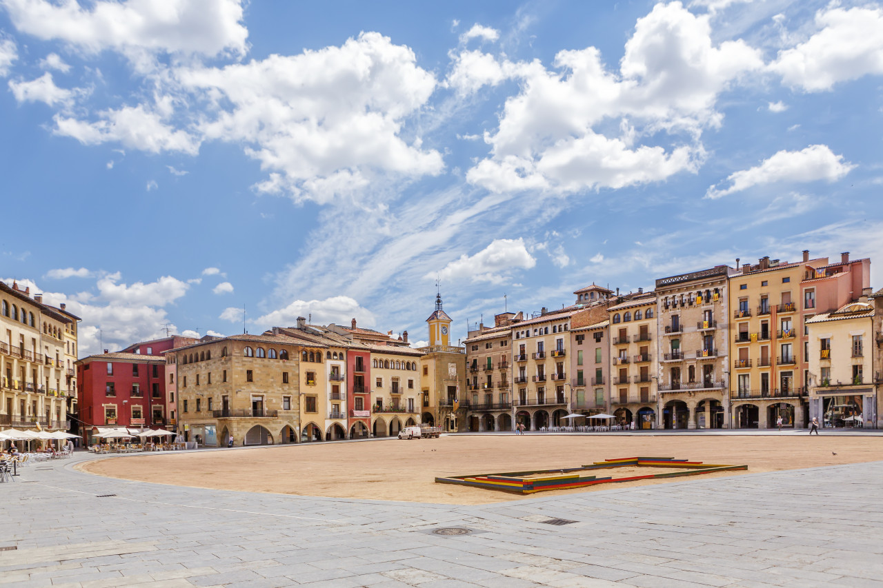 Vic, Hauptstadt von Osona. Um seine schöne Plaça Major zu bewundern, schlendern Sie zwischen den Ständen seines berühmten Marktes und probieren Sie die guten lokalen Produkte wie Fuet (Trockenwurst) und Llonganissa (Wurst).