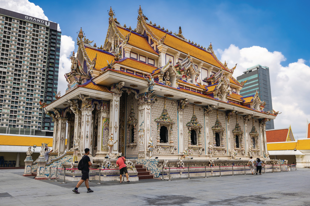 Vormittag zum Entspannen, Massage in einem der vielen Zentren der Stadt, Spa-Behandlungen, Kochworkshop, Faulenzen im Pool, wenn Ihr Hotel einen hat; kurz gesagt, ein ruhiger Vormittag. Am Nachmittag eine Fahrradtour mit Co Van Kessel entlang der Kanäle, um Holzhäuser, Tempel, Einheimische, Flora und Fauna zu entdecken. Abendessen im Issaya Siamese Club, Stadtteil Silom Sathorn, das als eines der besten Thai-Restaurants der Stadt gilt. Ein Abstecher zum Soi Cowboy für die Frechen.