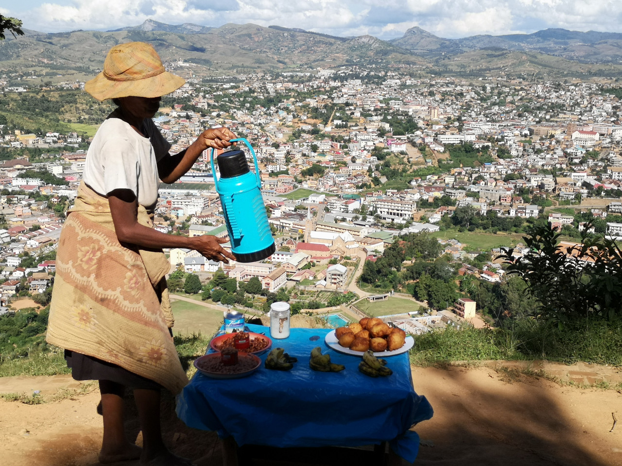 Der letzte volle Tag in Tananarive. Die letzte Gelegenheit, sich auf dem Andravoahangy-Markt im Nordosten des Stadtzentrums und in der Markthalle vonAnalakely in der Unterstadt mit Souvenirs einzudecken. Abends essen Sie in den besten Restaurants der Stadt, die sich meist zwischen der Ober- und der Unterstadt befinden