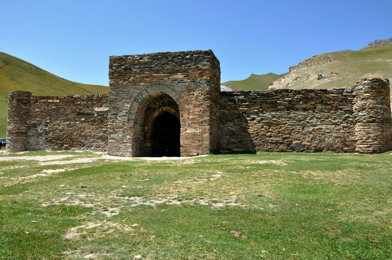 Besuchen Sie die Karawanserei von Tash-Rabat und reiten Sie am Fluss entlang. Planen Sie einen weiteren Tag ein, um bis nach Chatyr Kul vorzudringen. Übernachtung in der Jurte.