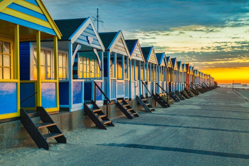 Southwold in der Grafschaft Suffolk ist ein charmanter Badeort, der auf hohen Klippen thront. Seine Sandstrände mit bunten Strandhütten verleihen ihm eine natürliche Eleganz, die auch im Stadtzentrum mit seinen vielen gepflegten georgianischen Gebäuden nicht verloren geht. Bei einem Spaziergang auf dem Pier kann man die Landschaft am besten genießen. In Southwold befindet sich auch das Familienhaus des Schriftstellers George Orwell