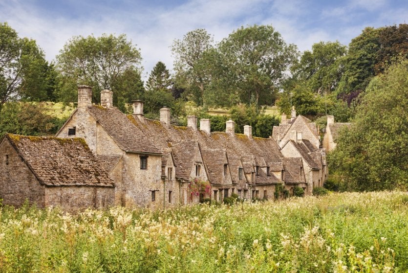 Die Region Cotswolds ist eine der malerischsten in England. Unter ihren zahlreichen Dörfern mit ihrem unbestreitbaren Charme ist unser Favorit Bibury. Die Hauptsehenswürdigkeit von Bibury ist die Arlington Row, die man übrigens auch in britischen Reisepässen findet! Die 1380 erbaute, von Steinhäusern gesäumte Straße ist ein Symbol für die lokale Architektur. Ursprünglich war in diesen Gebäuden ein Wollgeschäft untergebracht, heute befinden sich dort Bed & Breakfast-Unterkünfte