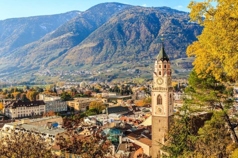 Die italienische Kleinstadt Meran in den Dolomiten ist ein das ganze Jahr über ein beliebter Kurort wegen seines milden Mikroklimas. Es ist erstaunlich, dass seine blühenden Gärten von schneebedeckten Bergen umgeben sind! Die renommierten Thermalbäder, die von vielen Stars und Spitzensportlern besucht werden, haben die Stadt zur Wellness-Hauptstadt Obertirols gemacht. Außerdem ist die Stadt, durch die der Fluss Passirio fließt, sehr sehenswert und hat viele architektonische Sehenswürdigkeiten zu bieten: Jugendstilgebäude und mittelalterliche Arkaden, Kapellen und kleine Kirchen, Plätze und Brunnen... Verpassen Sie nicht den Besuch von Schloss Trauttmansdorff am Stadtrand, der ehemaligen Residenz der Habsburger, die heute das Südtiroler Landesmuseum ist.