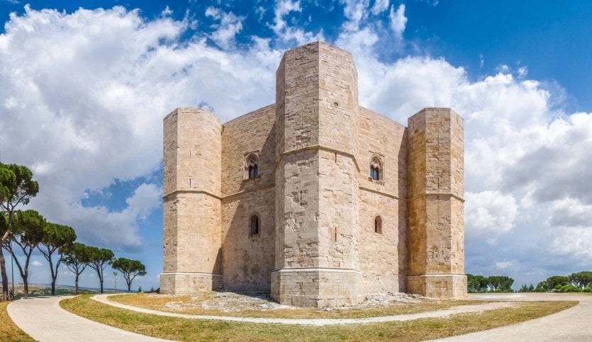 Das imposante Castel del Monte wurde im 13. Jahrhundert auf Wunsch von Friedrich II. erbaut und befindet sich zwischen Andria und Corato. Als Teil des UNESCO-Weltkulturerbes ist es ein einzigartiges Beispiel für mittelalterliche Militärarchitektur , das durch die mathematische Strenge seiner Pläne gekennzeichnet ist. Das Castel del Monte liegt auf einem kargen, mit Olivenbäumen bewachsenen Plateau und bietet einen wunderschönen Ausblick auf die Adriaküste, die es überragt.